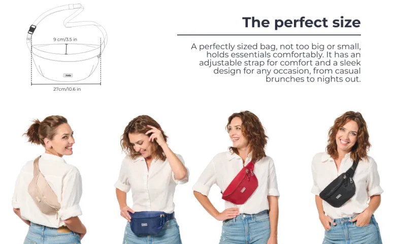 Viajar a menudo puede resultar estresante. Entre realizar un seguimiento de sus pertenencias y navegar por aeropuertos abarrotados o calles concurridas, es fácil sentirse abrumado. He estado allí y entiendo la frustración. Por eso quiero compartir cómo nuestras riñoneras han transformado mi experiencia de viaje y pueden hacer lo mismo por ti. Imagine tener una forma segura y cómoda de llevar sus elementos esenciales sin preocuparse de que se caigan o queden fuera de su alcance. Con nuestras riñoneras podrás tener a mano tu pasaporte, teléfono y cartera. El diseño permite un fácil acceso manteniendo sus pertenencias seguras y protegidas. Así es como funciona: 1. Elige tu estilo: Ofrecemos una variedad de diseños que combinan con tu estilo personal. Ya sea que prefieras un estilo elegante y minimalista o algo más vibrante, hay una riñonera para ti. 2. Ajuste para mayor comodidad: Cada bolsa es ajustable, lo que garantiza un ajuste perfecto que no rebotará mientras se mueve. Esto significa que puedes concentrarte en disfrutar tu viaje en lugar de reajustar constantemente tu bolso. 3. Manténgase organizado: Múltiples compartimentos lo ayudan a organizar sus artículos de manera eficiente. Ya no tendrás que buscar en una bolsa desordenada para encontrar las llaves o la tarjeta de embarque. 4. Travel Light: Con una riñonera, puedes viajar más liviano. Lleva sólo lo que necesitas, reduciendo la tensión en tus hombros y espalda. 5. Tranquilidad: Saber que sus objetos de valor están seguros le permite relajarse y disfrutar de su viaje. No más ansiedad por los carteristas o por perder sus pertenencias. En conclusión, nuestras riñoneras están diseñadas para mejorar tu experiencia de viaje. Ofrecen comodidad, seguridad y estilo, al mismo tiempo que reducen el estrés que a menudo acompaña a los viajes. Únase a los más de 30 000 viajeros que confían en nuestras riñoneras para viajes sin estrés. Experimente la diferencia usted mismo y dé el primer paso hacia viajes más placenteros.